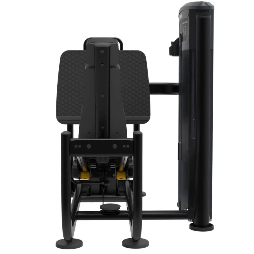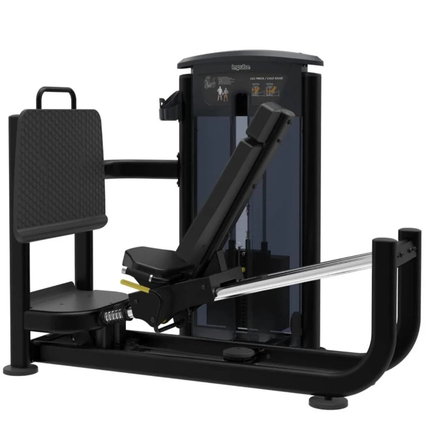 The Impulse IT9510 is a pin loaded machine for working out the quadriceps femoris (Quads) and auxiliary working out gluteus maximus (Glutes) and musculus gastrocnemius (Calves). The exerciser can effectively work out the muscles of leg and hip by pressing the foot plate after choosing the appropriate weight.