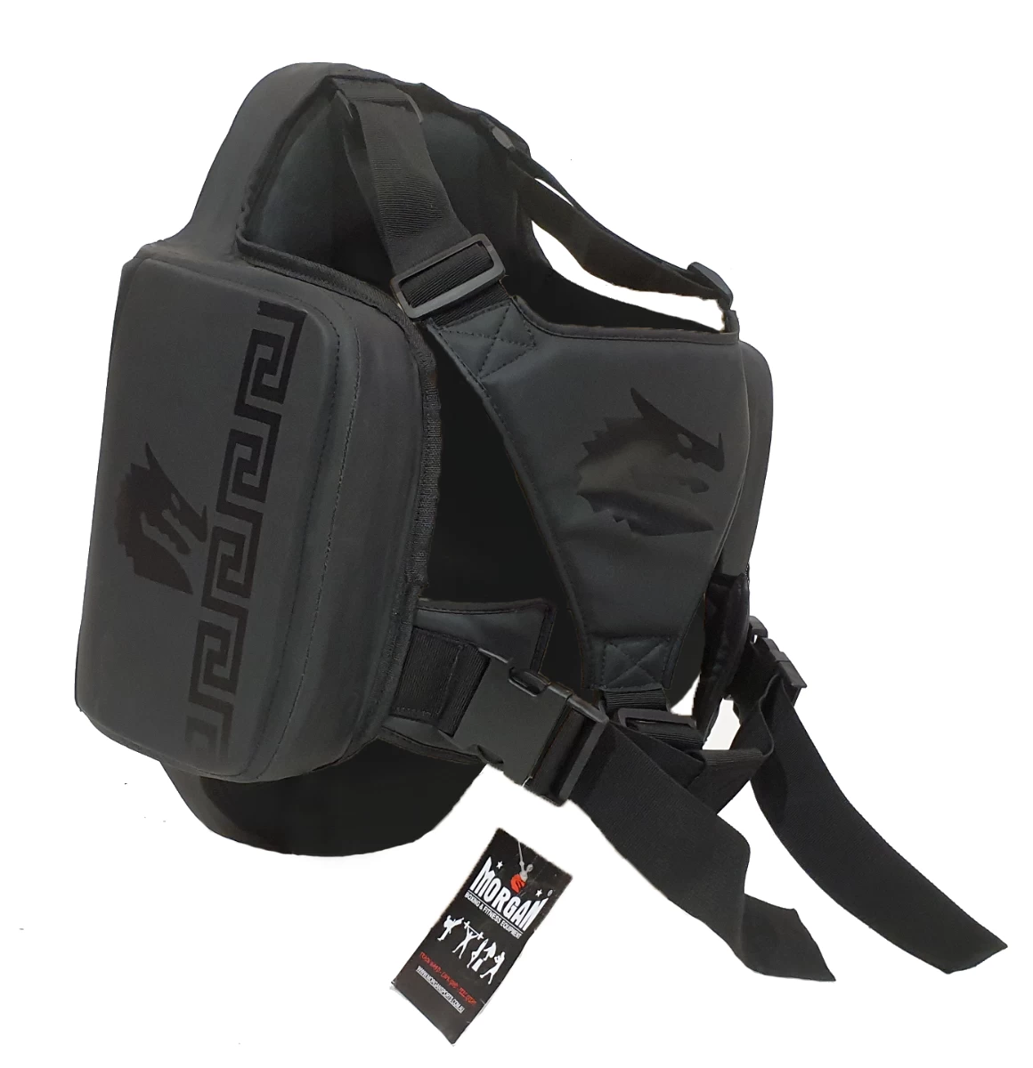 The Morgan B2 Bomber chest guard is updated with a modern design and technology that incorporates layers of high-quality EVA, underlay, and quad-core T3 padding. Perfect for coaches or trainers, this chest guard is made from our premium matt finished synthetic leather with full-body coverage to provide ELITE level performance. The lightweight (1.7kg) contoured shape infuses 7.5cm of multiple layers of energy-absorbing foam for heavy protection while allowing you to move freely during training. Five adjustable safety points offer a customisable fit with an additional rear padded back support to allow the chest guard to be worn for longer durations while limiting back and shoulder fatigue.
