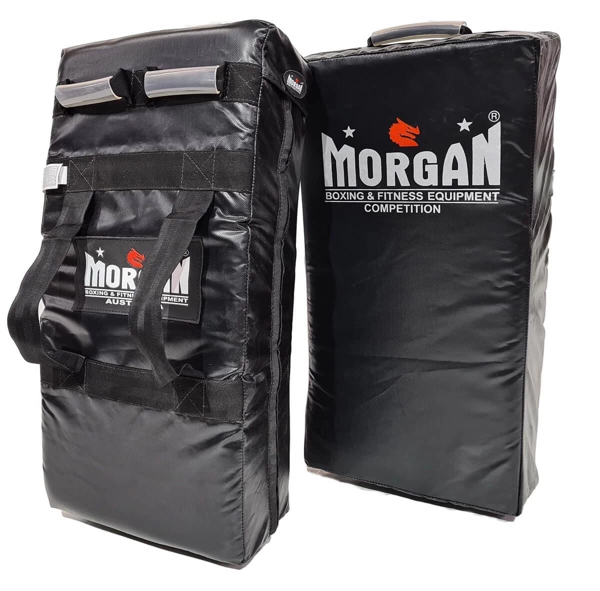 The Morgan extra heavy-duty competition strike shield is designed for the true combat sports competitor. It is meticulously handcrafted with a technical assemblage using our signature 1000D ripstop vinyl and 17cm high-density Australian-made inner foam. It is also constructed with a high-impact closed-cell protecting foam for impeccable performance and stunning results. The anatomically contoured design and craftsmanship of the four handles placed over the shield allow the trainer full flexibility when coaching. The back handles are offset for the trainer to hold at an ideal forearm positioning and comfort while offering additional handles at the top and bottom of the shield. This further allows seamless transitions to a leg pad and horizontal kick shield perfect for every type of punch, strike, and kicks with this beast.