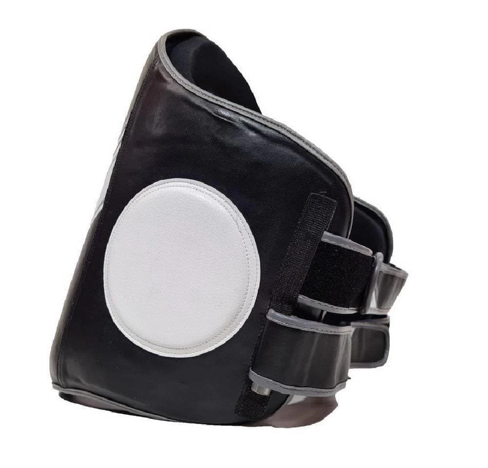 Crafted and manufactured to extend exceptional impact resistance and shock absorbency with less bulk. The professional quality foams maintain its extensive properties for impact resistance and superior coverage from beginning to end. Using a twin hook-and-loop rear-strapping system allows for the perfect fit adjustment for any body size. Compact contoured design offers wrap-around coverage, high chest and abdominal protection, excellent mobility and allows you to quickly put it on and off. This belly pad is ideal to use in combination with punch mitts for a full body training workout.